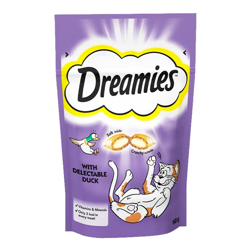 تشویقی گربه دریمیز با طعم اردک Dreamies Cat Snack with Duck وزن ۶۰ گرم