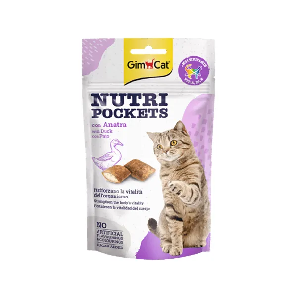 اسنک تشویقی نوتری گربه جیم کت با طعم اردک GimCat Nutri Pockets duck وزن ۶۰ گرم
