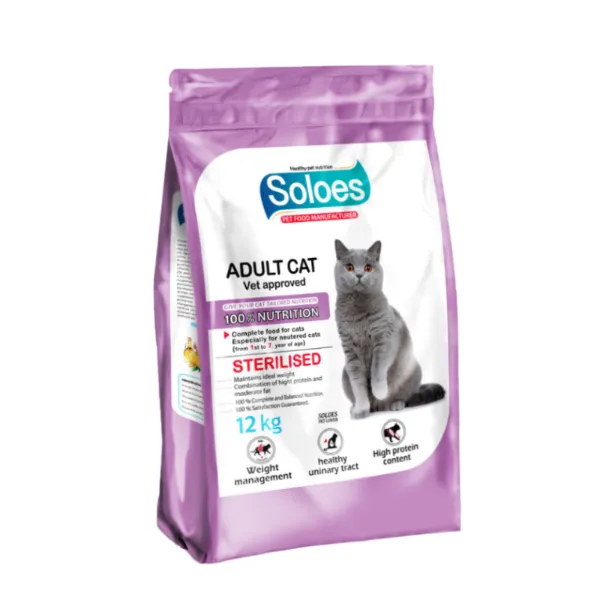 غذای خشک درمانی گربه عقیم شده سولواس Soloes Adult Cat Vet Approved Sterilised وزن ۱۲ کیلوگرم