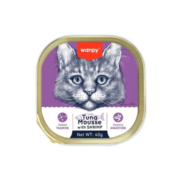 ووم گربه ونپی با طعم ماهی تن و میگو Wanpy Tuna Mousse With Shrimp وزن ۴۰ گرم